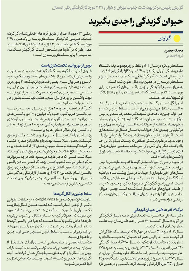 سگ های ولگرد در سال 1404 و فقط در زیر مجموعه یک دانشگاه علوم پزشکی تهران، یک هزار و 349 مورد گاز گرفتگی ایجاد کردند، این در حالی است که آمار گاز گرفتگی سگ های صاحب دار 4 برابر سگ های پرسه زن در همین بازه زمانی عنوان شده است.