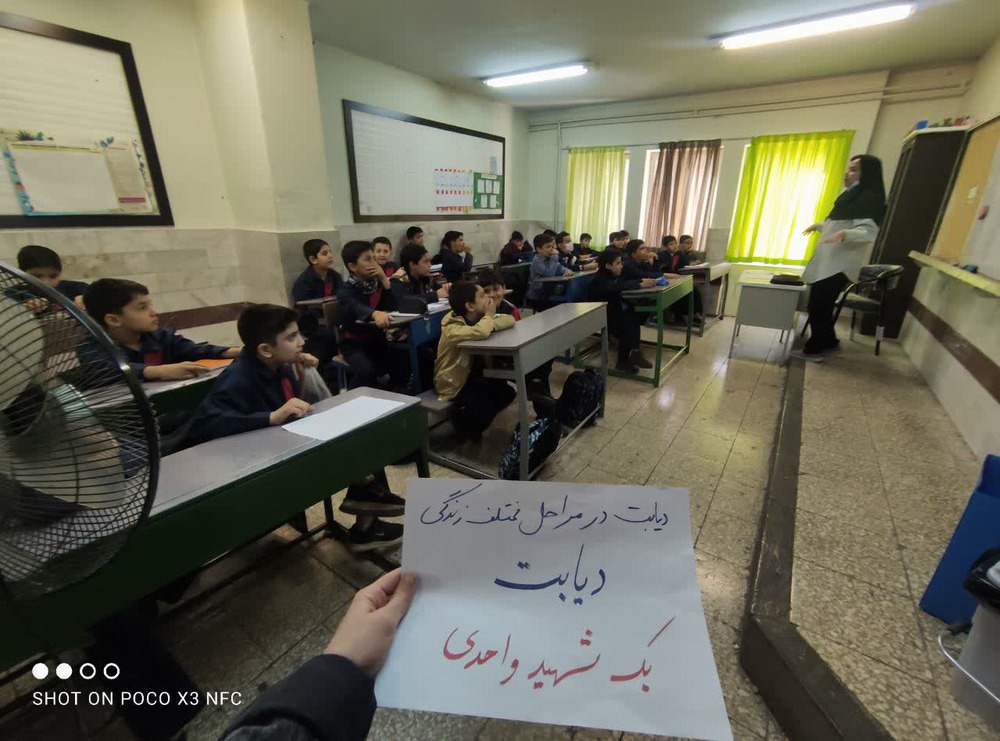 در ادامه سهیلا حقیقی مراقب سلامت پایگاه شماره یک شهید واحدی در مسجدی واقع در منطقه 16 و یکی از مدارس پسرانه این منطقه برای نمازگزاران و دانش آموزان کلاس آموزشی سبک زندگی سالم، کنترل دیابت و نقش تغذیه را برگزار کرد.