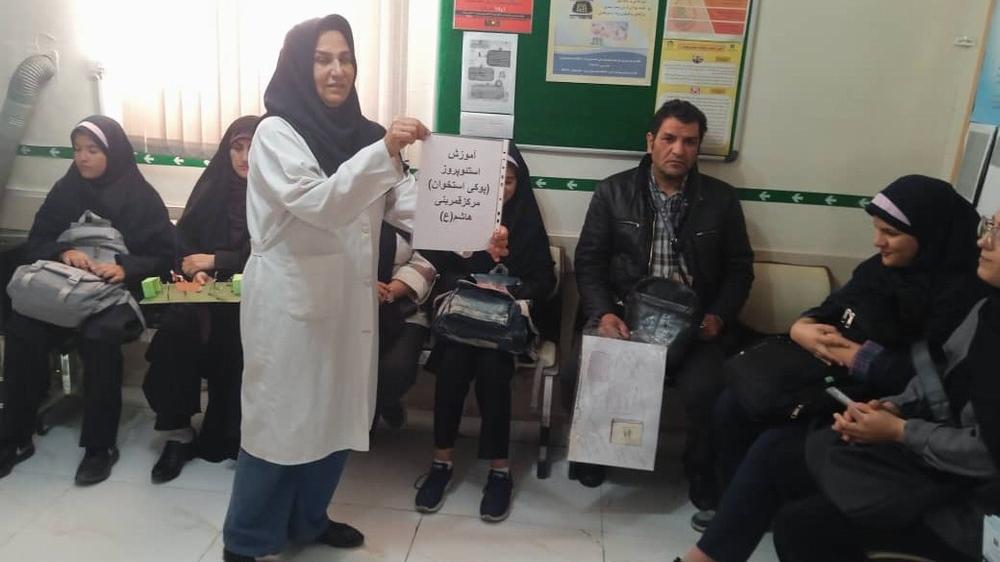 همچنین ایمانی مراقب سلامت پایگاه شماره دو اکبرآباد مراقب سلامت در خصوص پیشگیری از پوکی استخوان مطالبی را بیان و فاطمه نظام مراقب سلامت مرکز امام محمدباقر (ع) ضمن برگزاری جلسات آموزشی در زمینه پیشگیری از پوکی استخوان اقدام به غربالگری و آموزش درباره سرطان پستان کرد. این برنامهها باهدف ارتقای آگاهی عمومی در زمینه پیشگیری از بیماریهای غیر واگیر بهویژه سلامت استخوان و پیشگیری از سرطان پستان برگزار شد.