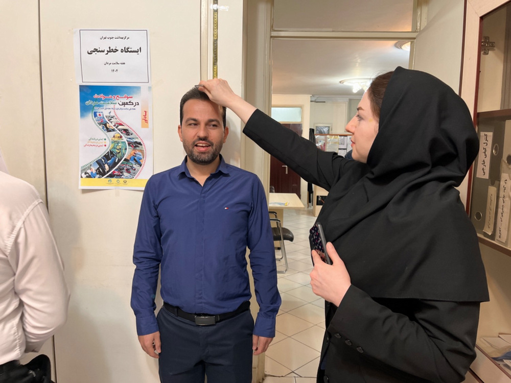 در ادامه نیز با همکاری کارشناسان واحد جوانی جمعیت و سلامت خانواده؛ قد ، وزن ، دور کمر ، نمایه توده بدنی و فشارخون آقایان اندازه‌گیری شد.