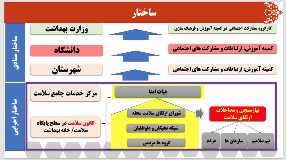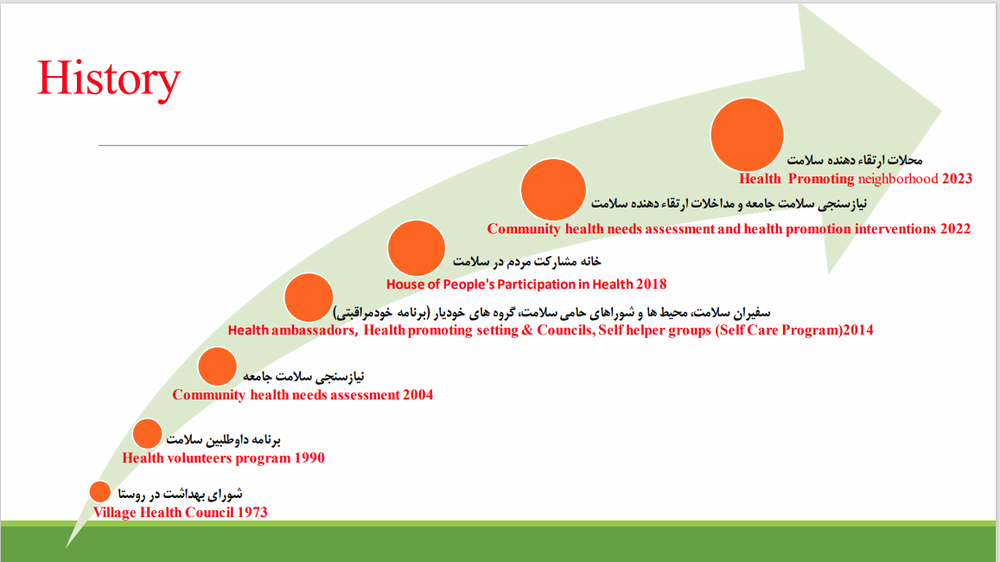 دکتر عبائیان در ادامه از جمعیت تحت پوشش مراکز و پایگاههای بهداشتی و معرفی خدمات این مراکز گزارشی ارائه داد. همچنین در این جلسه به نقش تشکلها و مشارکتهای مردمی در اجرای برنامههای سلامتمحور، ساختار محله ارتقاء دهنده سلامت، اهمیت تشکیل شورای سلامت در سطح مراکز و پایگاههای بهداشتی و ضرورت تأسیس کانون اجتماعی فرهنگی سلامت در سراهای محله اشاره شد. در ادامه روزشمار هفته سلامت با شعار، سرآغازی سلامت، آیندهای سرآمد، معرفی و بر ضرورت همکاریهای بین بخشی در بزرگداشت باشکوه این مناسبت تأکید شد. در پایان نیز حاضران در جلسه، نقطه نظرات خود در خصوص موانع اجرای برنامه محلات ارتقاء دهنده سلامت و پیشنهادات در این رابطه را مطرح کردند و نمایندۀ خانه مشارکت مردم در سلامت و توسعه منطقه 17 به فعالیتهای محله محور این مجموعه در سال گذشته اشاره کرد.