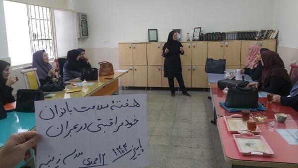 وی در ادامه افزود: در روزهای 27،28 و 30 مهر سال جاری، اعظم اکبری مراقب سلامت مرکز چهارده معصوم، زینب مظهری مراقب سلامت پایگاه 3 مرکز 21، منصوره میرزا زاده مراقب سلامت پایگاه 4 مرکز 21، زهرا رستمی مراقب سلامت مرکز صاحبالزمان، مهسا نوشیان مراقب سلامت شماره 1 شاهآبادی، الهه نجفی مراقب سلامت مرکز شهید احمدی، مریم خانی مراقب سلامت پایگاه شماره 1 محمدباقر (ع)، زهرا رزاقی مراقب سلامت 4 آیت، فاطمه رستمی مراقب سلامت مرکز امام حسن (ع)، بهناز پور شریفی مراقب سلامت شماره 1 آیت، آیدا ریاضی مراقب سلامت شماره 1 چهارده معصوم، معصومه محمدیان مراقب سلامت ضمیمه 31، فائزه خیمه گرد مراقب سلامت شماره 2 شهید احمدی، سمیرا مرجانی مراقب سلامت مرکز میثم، نرگس مهمانی مراقب سلامت مرکز امام علی (ع)، فاطمه نجاتی مراقب سلامت مرکز امام صادق (ع)، فاطمه مغان زاد مراقب سلامت پایگاه شماره 2 کافی، فاطمه رضایی مراقب سلامت مرکز خاکباز، فائزه رضوانی مراقب سلامت شماره 1 مرکز 10، زهرا میرزایی مراقب سلامت 1 ابنسینا و آرزو عزیزیان مراقب سلامت شماره 3 ابوذر کلاس آموزشی با موضوع خود مراقبتی در بحران و توانمندسازی مهارتآموزی بانوان برای مقابله با بحران را با شعار (زنان سالم، آگاه و توانمند نقش کلیدی در تابآوری خانواده و جامعه دارند) برای 380 نفر از کارکنان مدرسه برگزار کردند.